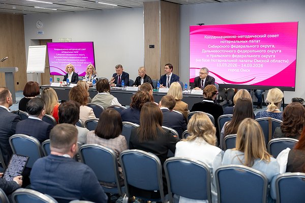 12–13 марта в Омске прошло объединенное заседание Координационно-методических советов нотариальных палат Сибирского, Дальневосточного и Уральского федеральных округов. Представители нотариальных палат 23 субъектов РФ обсудили широкий круг актуальных вопросов правоприменительной практики, касающихся изменений в наследственном и корпоративном сегментах права, работы нотариусов в рамках антиотмывочного контура и др.